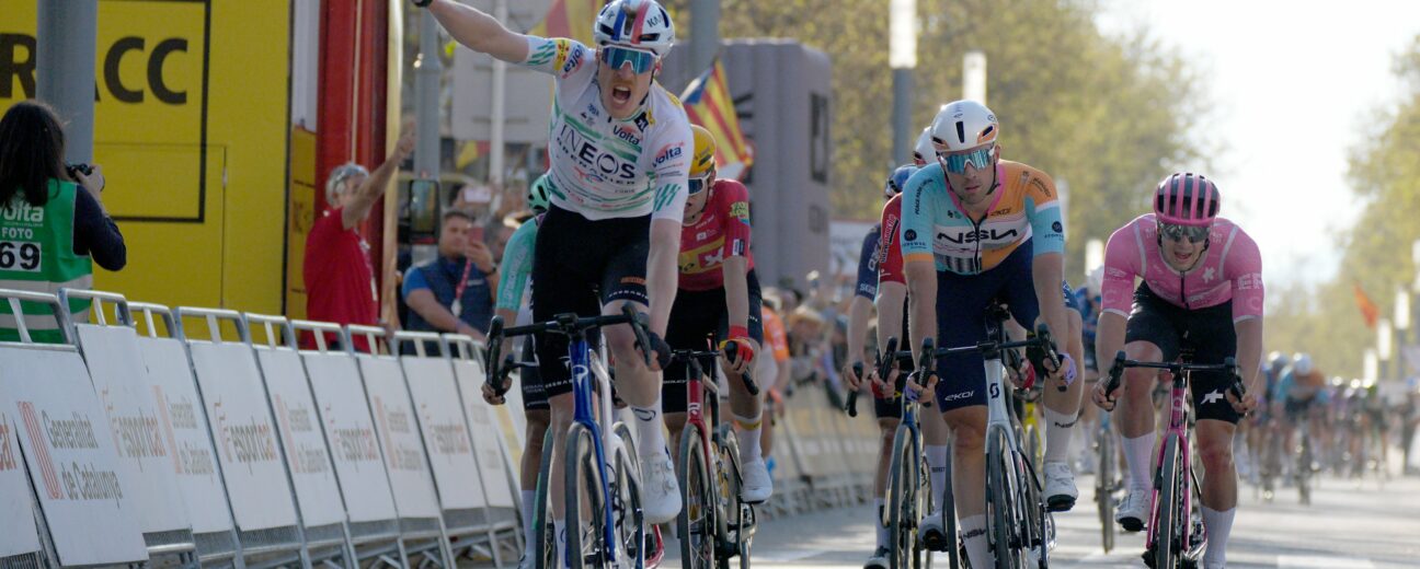 Dorian Godon (Ineos Grenadiers) a remporté, ce mercredi, la 3ème étape du Tour de Catalogne 2026. À 28 kilomètres de l’arrivée, Remco Evenepoel (Red Bull Bora-Hansgrohe) profite du vent de côté pour accélérer et partir seul. Jonas Vingegaard (Visma | Lease a Bike) régait et parvient à revenir sur le Belge. Evenepoel s’agace du peu de relais passé par Vingegaard et le peloton revient dans les derniers kilomètres. Alors qu’ils étaient sur le point d’être repris, Evenepoel en remet, avec le Danois sur le porte bagage.