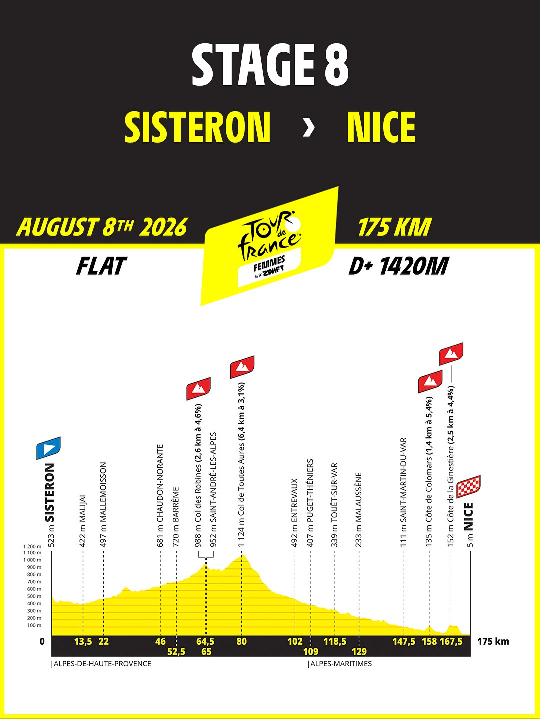 Entre le 1er et le 9 août, les championnes se départageront au total sur 1175 km (la plus longue distance depuis la renaissance de l’épreuve), avec un Grand Départ suisse où les puncheuses et sprinteuses seront à l’honneur, puis les rouleuses sur un contre-la-montre jugé à Dijon et les meilleures grimpeuses sur le Ventoux. Pour terminer le périple et pourquoi pas bousculer la hiérarchie, il restera alors deux étapes où la ligne d’arrivée sera dessinée à Nice sur la Promenade des Anglais. C’est sur un parcours légèrement différent de la 6e étape que les cyclosportifs de la 2e édition de L’Étape du Tour de France Femmes avec Zwift se retrouveront le 6 août. Mais c’est bien avec la redoutable montée du Ventoux par le village de Bédoin qu’ils termineront leur effort.