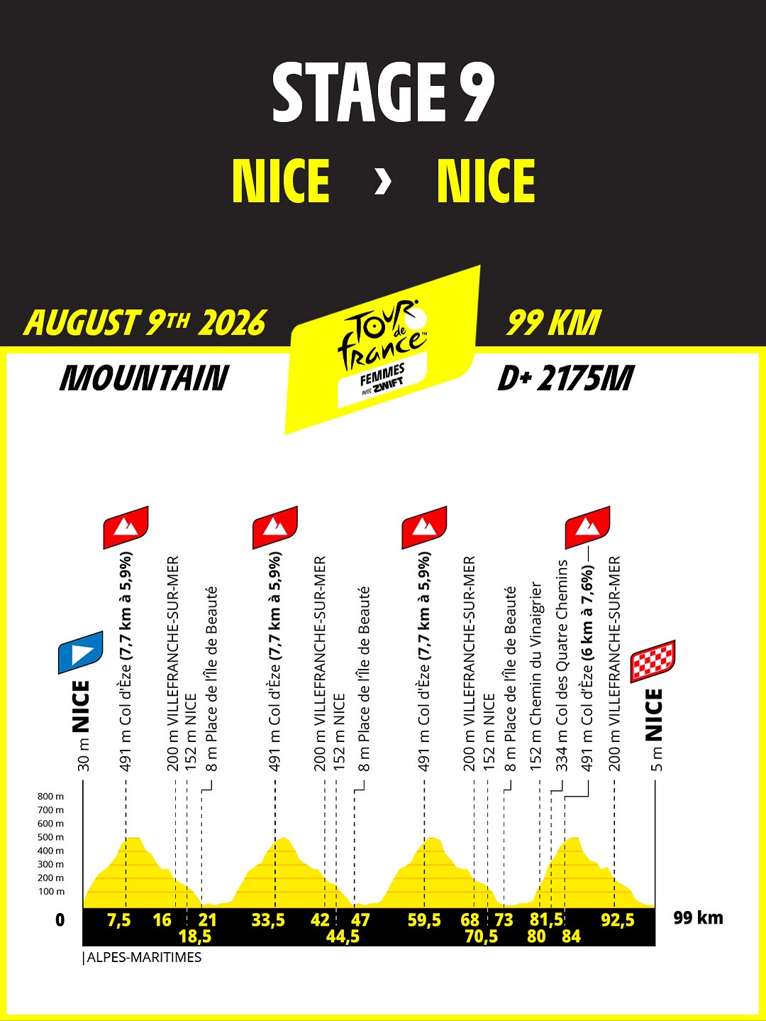 Il sera possible de se refaire légèrement le lendemain dans les reliefs du Beaujolais (5e étape), mais l’heure de vérité se présentera le 7 août, au moment de traverser Bédoin pour entrer dans les 15,7 kilomètres d’ascension menant à la station météo du Mont Ventoux (6e étape). Le verdict du Mont chauve ne sera pas forcément définitif, le Maillot Jaune pouvant encore changer d’épaules sur les deux arrivées niçoises (8e et 9e étapes), en particulier sur la dernière journée qui comprendra quatre ascensions au col d’Eze avant le finish sur la Promenade des Anglais.