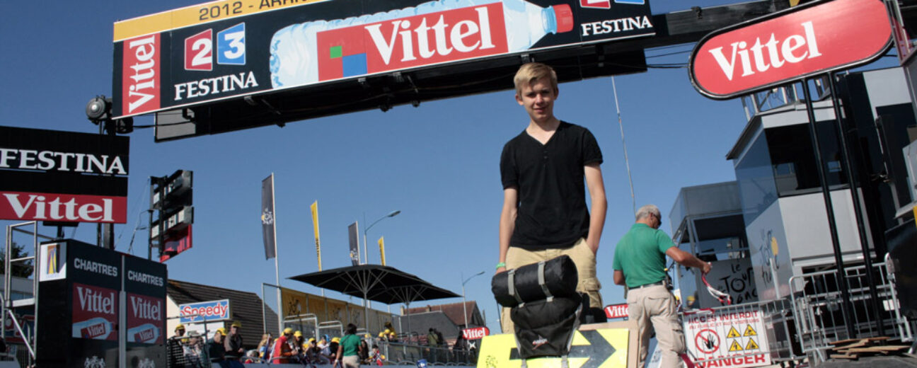 On avait croisé sa route l’an passé, c’est avec plaisir qu’on a retrouvé la mine juvénile de Simon Carnochan, 20 ans, baroudeur du Tour pour la seconde année. Sac de voyage sur le dos, l’Anglais d’Upminster bouclera cet après-midi un périple d’un mois aux abords de la Grande Boucle. Parti seul de Liège avec 100 euros en poche, le jeune homme qui parfait son français au fil des éditons aura suivi la caravane des suiveurs en stop, une fine toile de tente pour toit et les produits distribués par la caravane pour alimentation. Qu’importe les lits de fortune, au diable les légumes frais, Simon n’aurait manqué pour rien au monde le triomphe de ses héros anglais. « Pour les fans de cyclisme, c’est une année spéciale, comme la victoire de l’Angleterre en Coupe du Monde de foot en 1966. » L’an prochain, il aimerait joindre l’utile à l’agréable en travaillant sur le Tour.