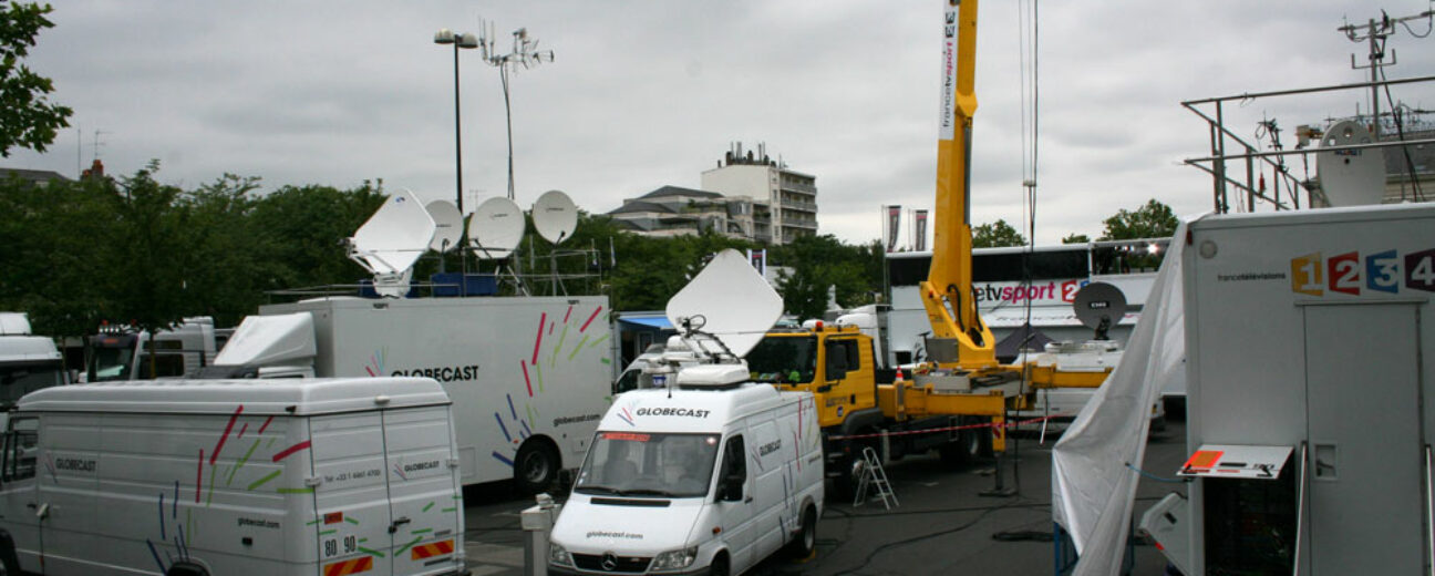 Pour permettre aux 190 pays de la planète de recevoir les images et les sons en provenance du Tour de France, 5000 m² sont nécessaires à l’installation de la de zone technique située dans l’aire d’arrivée de chaque étape. 120 camions composent cette zone dont l’accès est réglementé. 60 kilomètres de câbles y sont déroulés en moyenne au quotidien !