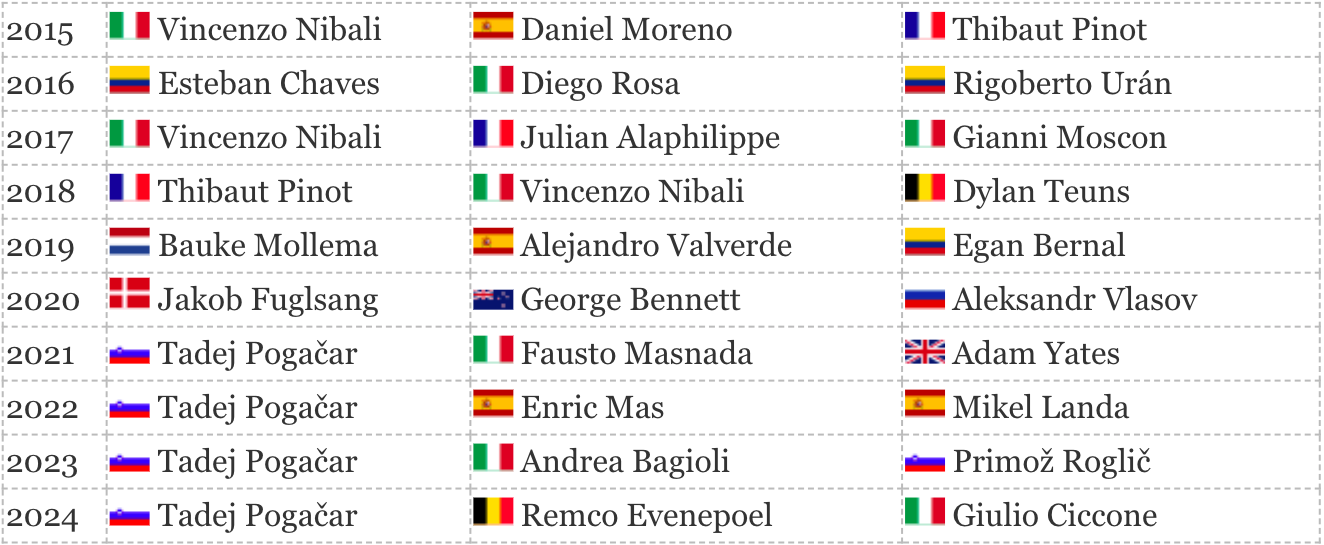 La 119ᵉ édition du Tour de Lombardie a lieu ce samedi 11 octobre. Créée en 1905, l’épreuve est inscrite au calendrier UCI World Tour. Il s’agit du dernier Monument de la saison. L’an dernier, le champion du monde Tadej Pogačar (UAE Team Emirates) s’était imposé en solitaire, devant Remco Evenepoel (Soudal Quick-Step) et Giulio Ciccone (Lidl-Trek). Cette année, Tadej Pogačar sera le grand favori, lui qui pourrait s’imposer pour la cinquième fois consécutive en terre lombarde. Remco Evenepoel, Paul Seixas (Décathlon AG2R La Mondiale) ou encore Isaac Del Toro (UAE Team Emirates – XRG) seront également au départ.
