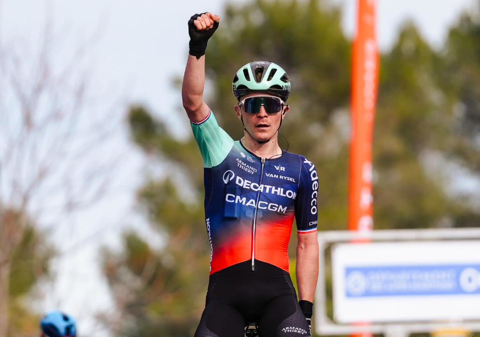 Paul Lapeira (Décathlon CMA CGM) a remporté, ce dimanche, le Tour des Alpes-Maritimes. Alors que les deux hommes de tête, Marco Brenner (Tudor Pro Cycling Team) et Lenny Martinez (Bahrain Victorious) ont été repris dans le dernier kilomètre, Paul Lapeira fait parler ses talents de puncheur pour s’imposer. Il devance Christian Scaroni (XDS Astana Team) et Simon Carr (Cofidis). Lapeira décroche sa première victoire de la saison 2026, lui qui a terminé 2ème du classement général de l’Étoile de Bessèges.