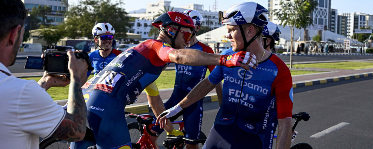 Jonathan Milan (Lidl-Trek) a remporté, ce jeudi, la 4ème étape de l’UAE Tour 2026. L’Italien s’est imposé au sprint, devançant Ethan Vernon (NSN Cycling Team) et son petit frère Matteo Milan (Groupama-FDJ United), qui a décroché son premier podium WorldTour. L’arrivée au sprint était loin d’être jouée d’avance, car l’échappée de quatre coureurs – Patrick Gamper, Stefan De Bod, Lorenzo Milesi et Georg Steinhauser – a résisté au peloton jusqu’à l’entrée du dernier kilomètre, offrant un dénouement spectaculaire. À la veille de l’étape de Dubaï, qui devrait une fois de plus favoriser les sprinteurs, le classement général reste inchangé, Antonio Tiberi (Bahrain Victorious) conservant le maillot rouge.