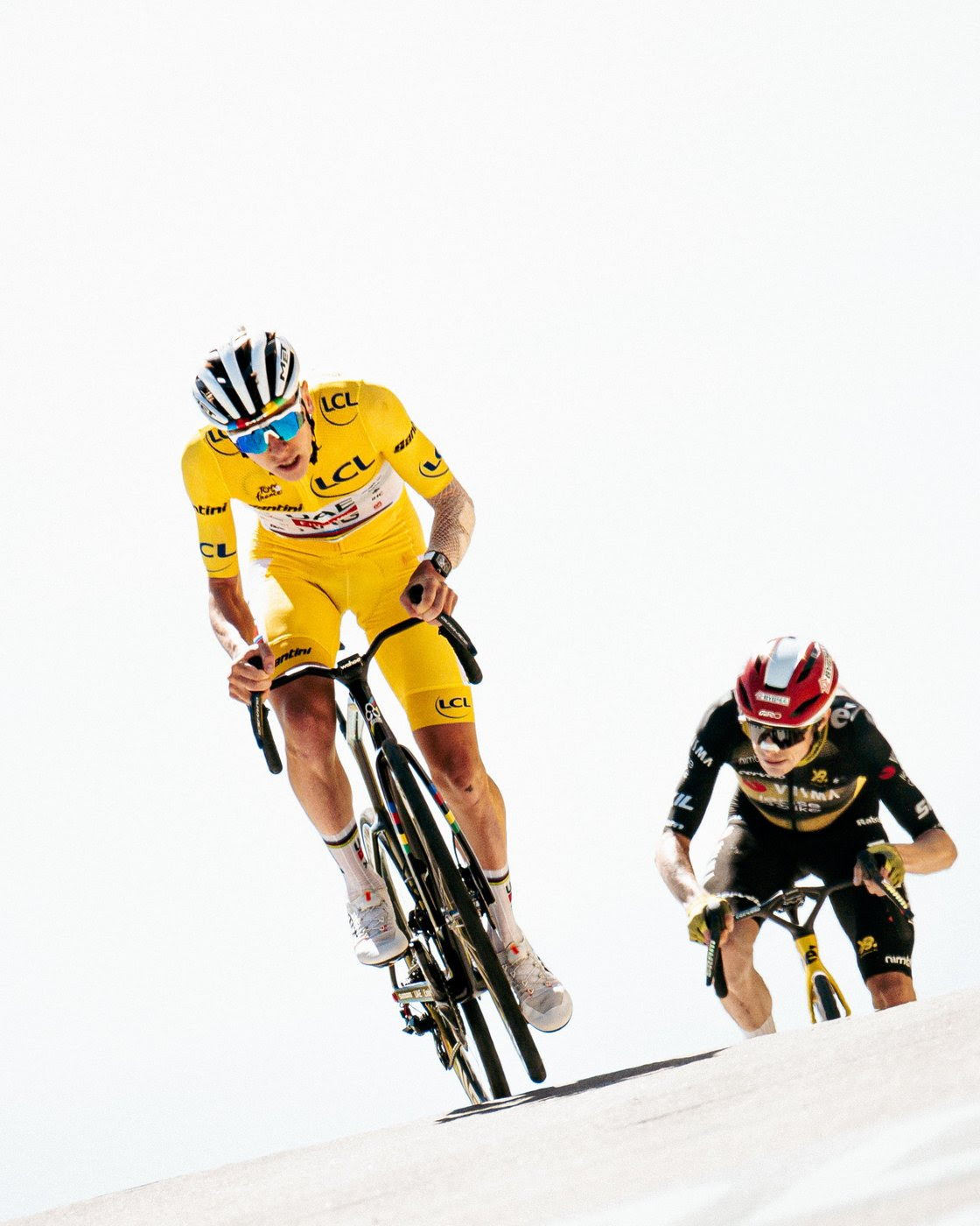 Le 22 juillet 2025, Tadej Pogačar s’alignait sur le départ de la 16ᵉ étape du Tour de France à Montpellier, arborant le maillot jaune et enfourchant un vélo qui a immédiatement attiré l’attention du monde du cyclisme. Quelques jours auparavant, lors du contre-la-montre en côte vers Peyragudes, il avait déjà utilisé un Colnago Y1Rs dans une livrée noire et blanche brute, sans les couleurs arc-en-ciel de l’UCI – la première apparition publique de ce vélo personnalisé.