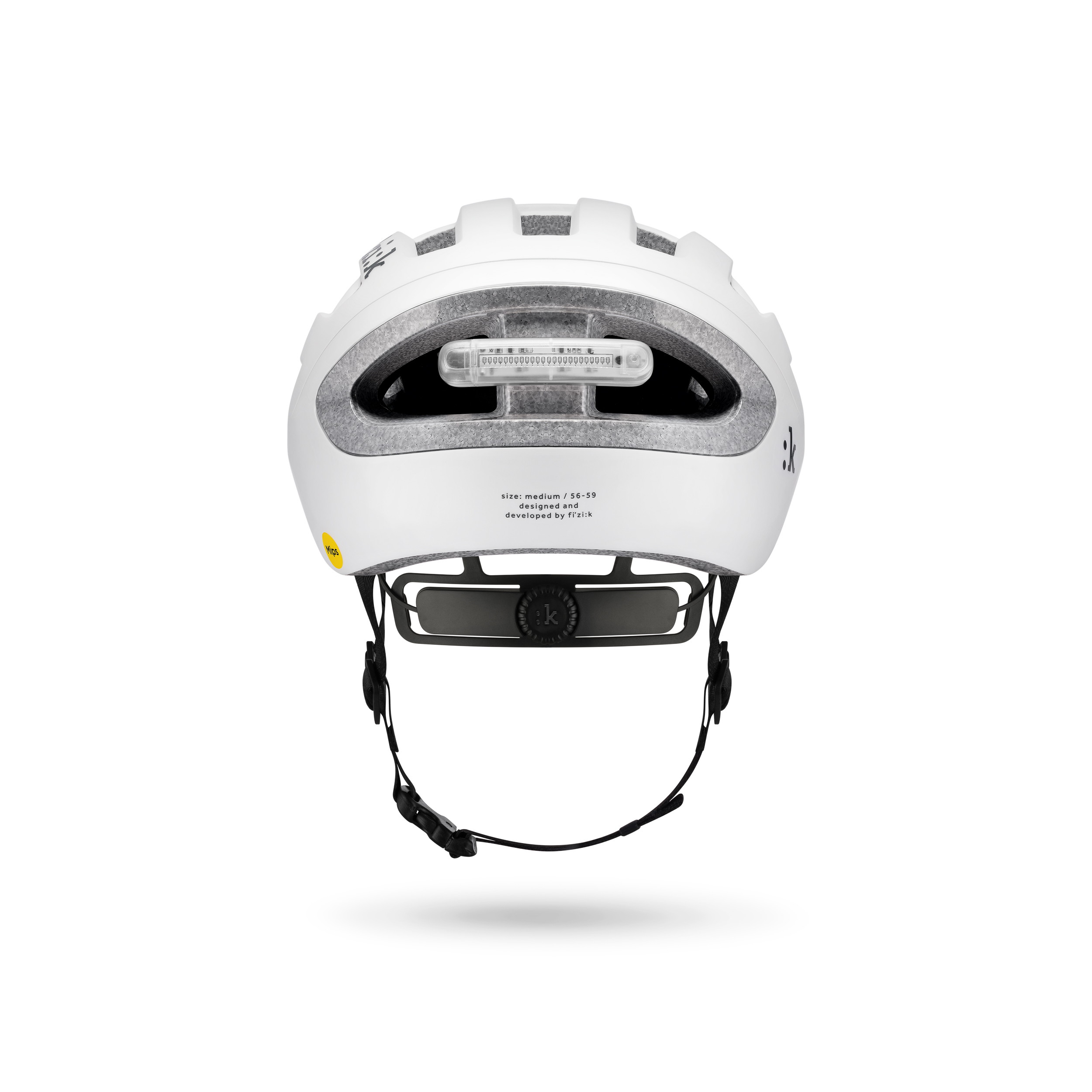 Comme les autres casques de route Fizik, le Kyros est compatible avec l’éclairage intégré Fizik. Conçu pour améliorer la visibilité du cycliste d’une simple pression sur un bouton, cet éclairage s’installe rapidement et sans outil à l’arrière des casques compatibles, pour une sécurité accrue. Le Kyros est livré avec une plaque de fixation pour l’éclairage et une bande réfléchissante pouvant remplacer celui-ci, offrant ainsi au cycliste le choix entre une aide à la visibilité active ou passive. L’éclairage est vendu séparément au prix de 29,00 €.