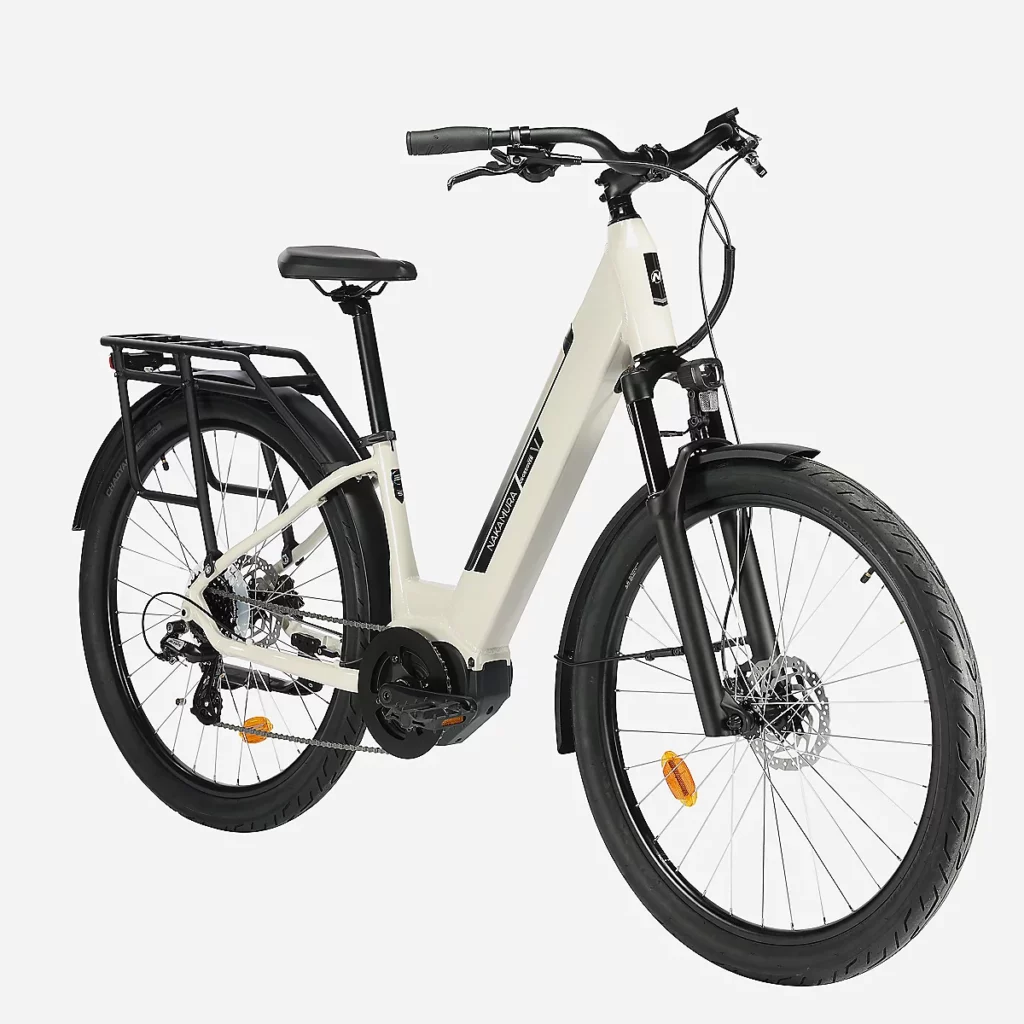 - Équipements inclus : éclairage intégré, garde-boue, porte-bagages, béquille, antivol de cadre.
