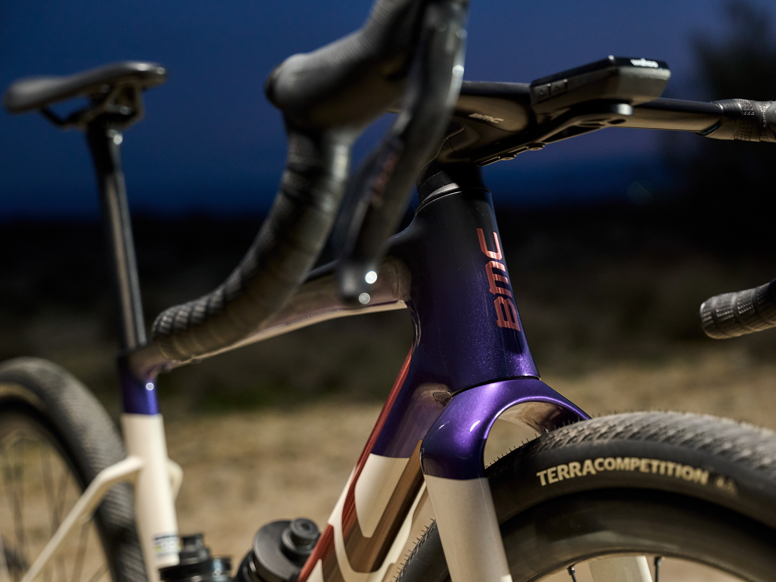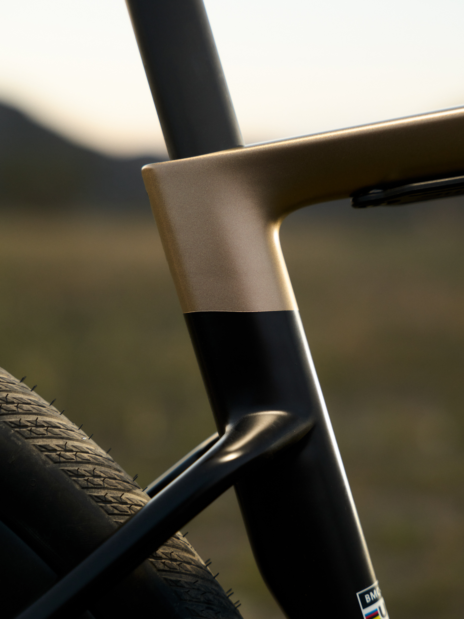 Rouler à un rythme de course exige de pouvoir maintenir une position efficace, tout en ayant une confiance totale dans le comportement et l’adhérence du vélo. La vitesse ne dépend pas uniquement de la puissance, mais aussi du contrôle. Le facteur numéro un en matière de comportement et de traction reste la largeur des pneus. Lors du développement de cette nouvelle génération du Kaius, les ingénieurs BMC ont donc fait le choix d’augmenter le dégagement des pneus afin d’anticiper les évolutions futures. Le tout nouveau Kaius est désormais compatible avec des pneus larges jusqu’à 52 mm, tout en respectant le dégagement ISO de 6 mm. Il conserve également la possibilité de descendre jusqu’à des pneus de 32 mm sans compromettre le comportement du vélo.