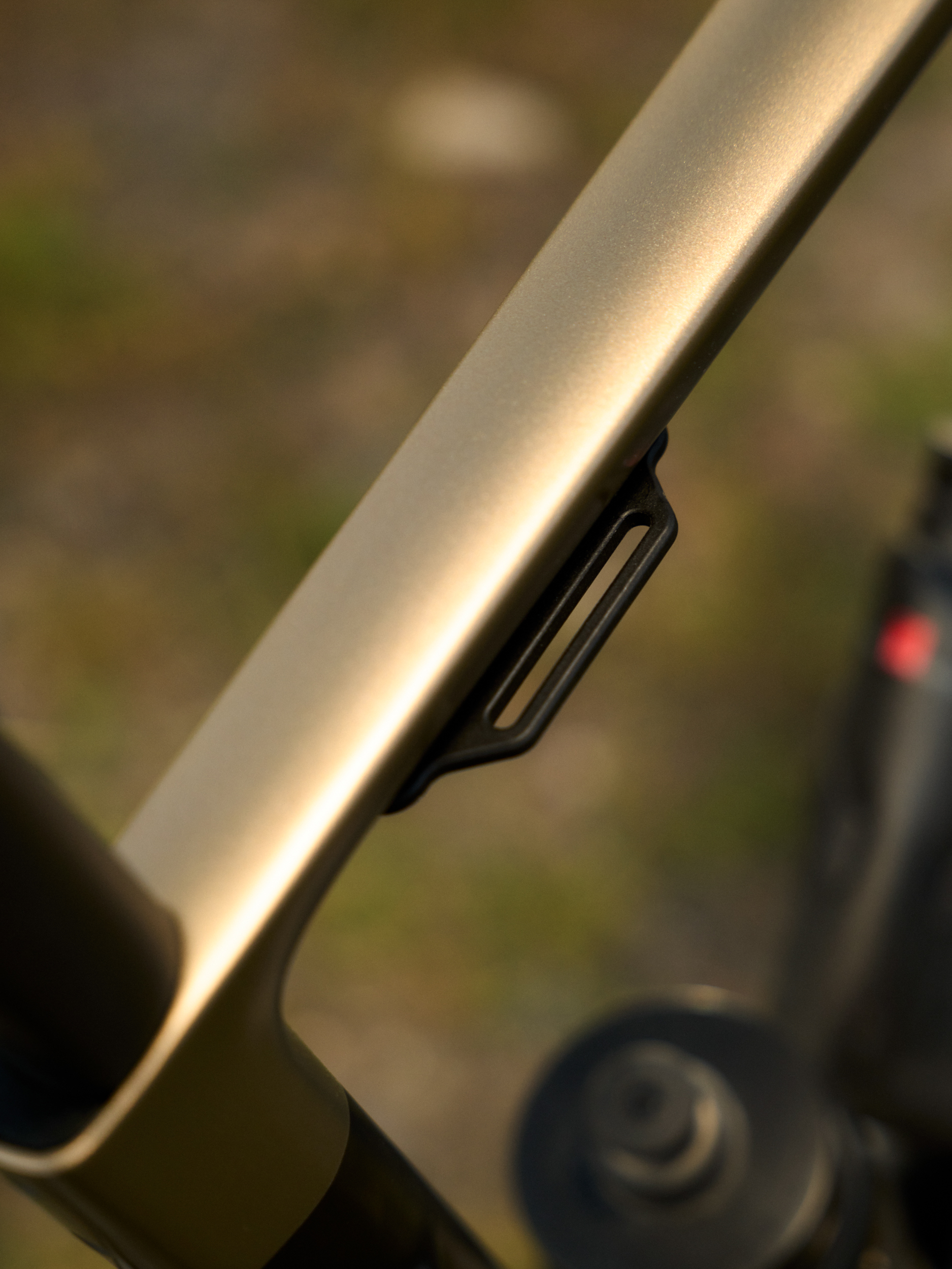 Le travail de projection dans le futur ne s’arrête pas au dégagement des pneus. BMC a également conçu le cadre autour de solutions de transmission permettant d’adapter facilement les développements, que ce soit pour les augmenter ou les réduire selon les besoins. Pensé autour d’un groupe en 1x, le Kaius peut accueillir des configurations de type gravel ou VTT, en fonction des préférences du cycliste. Pour aller encore plus loin, les équipes BMC ont intégré les besoins en rangement spécifiques au gravel racing, avec notamment un point de fixation supplémentaire pour porte-bidon sous le tube diagonal, ainsi qu’un nouveau support cargo sur le tube supérieur. Une démonstration que chaque détail compte.