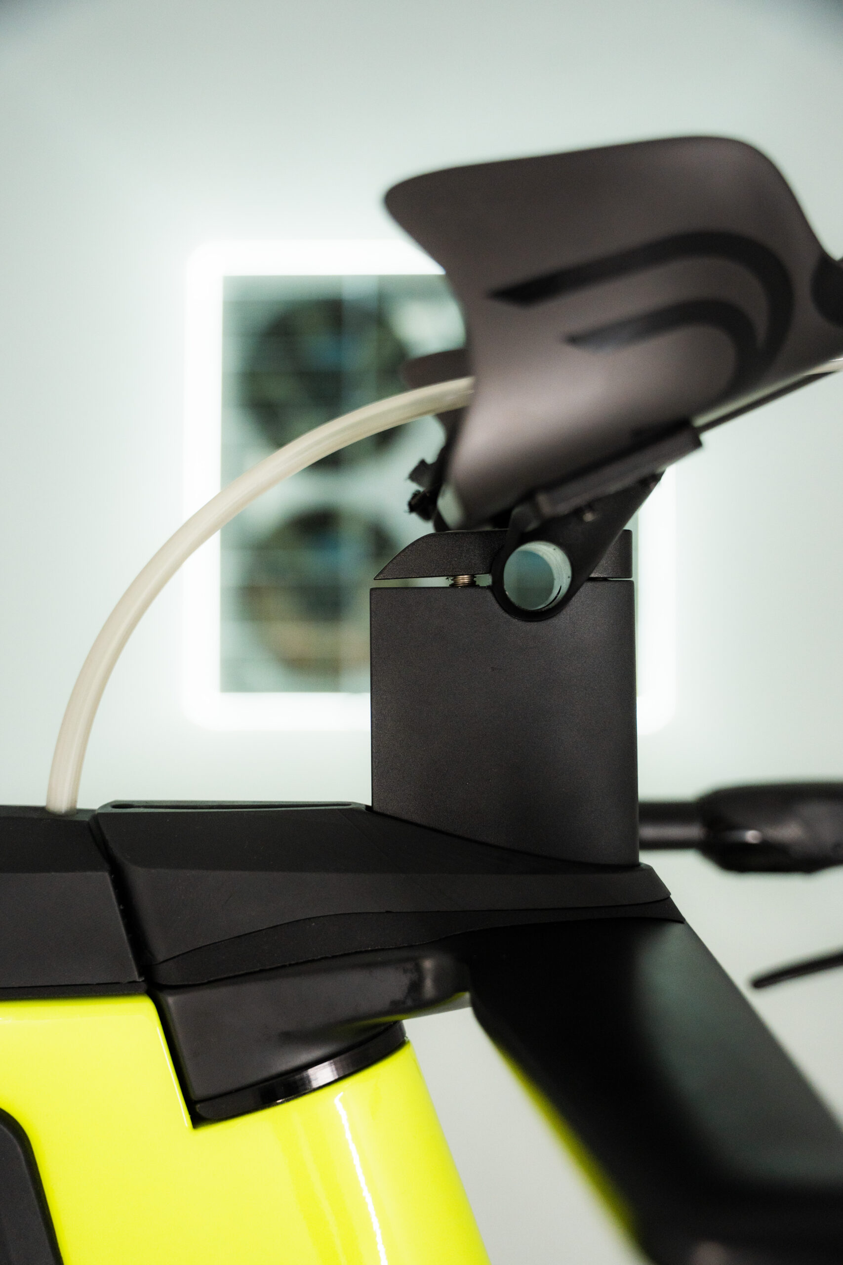 Le cockpit du Triton Fast est conçu pour une capacité de réglage maximale. Avec un système de mono-riser innovant et une « wing », l’athlète peut ajuster la hauteur, la portée (reach) et l’angle. Cela facilite la recherche de la position parfaite et garantit un avantage aérodynamique. De plus, le cockpit peut être démonté avec seulement deux vis, ce qui simplifie les déplacements et le transport.