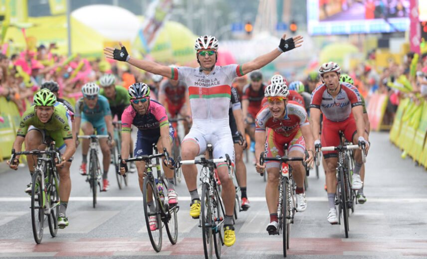 Le Biélorusse Yauheni Hutarovich (Ag2r La Mondiale) remporte une étape complètement folle marquée par de violents orages d'été.
