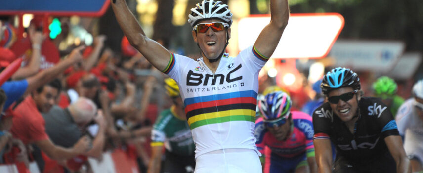 Vuelta # 12. Après des mois de disette, Philippe Gilbert porte les couleurs de l'arc-en-ciel au sommet. Comme l'an dernier, il a attendu la Vuelta pour ouvrir son compteur.