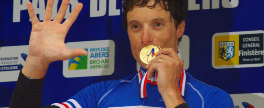 Championnat de France CLM. Fait historique, Sylvain Chavanel s'offre un cinquième titre de champion de France, devançant deux coureurs de la FDJ, Roy et Le Bon.