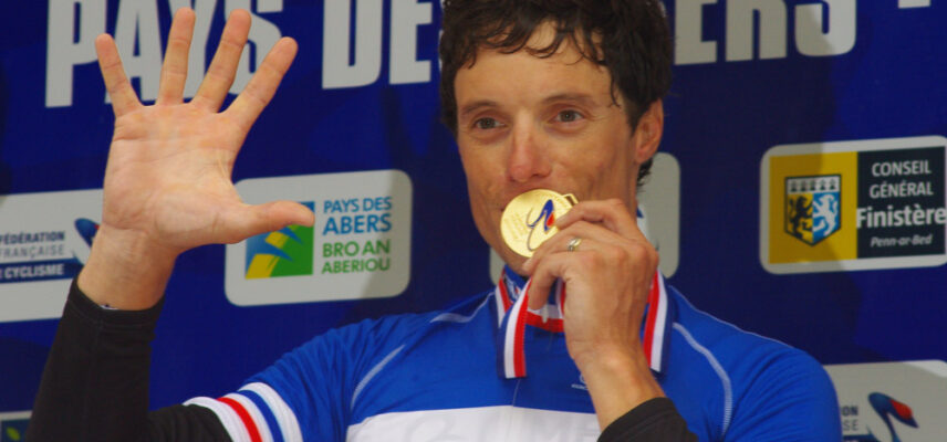 Championnat de France CLM. Fait historique, Sylvain Chavanel s'offre un cinquième titre de champion de France, devançant deux coureurs de la FDJ, Roy et Le Bon.