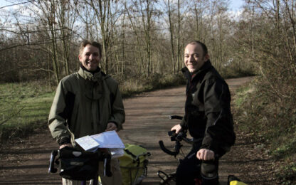 Deux journalistes couvrent la campagne à vélo, la Coulainaise Vallée de la Sarthe le 31 mars, gros plan sur...