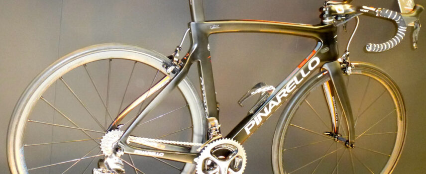 Utilisé par les coureurs du Team Sky, le Dogma F8 était la star du stand Pinarello à Eurobike. Évolution du Dogma 65.1, il est toujours plus aérodynamique et rigide.
